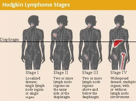 Stage II: Cancer is present in two or more lymph node regions on the same side of the diaphragm, or the cancer involves a single organ and its regional lymph nodes, with or without cancer in other lymph node regions on the same side of the diaphragm.